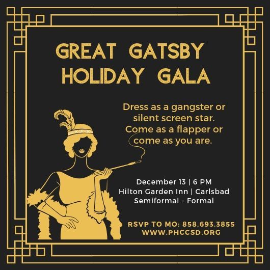 Bring your team and make this your company party! Friday, December 13th, 6-11pm at the Hilton Garden Inn, Carlsbad. Join Us at the Speak Easy for a Casino Night Full of Gambling, Giggle Water, Dancing, Flappers & Fun! Dress as a gangster or silent screen star. Come as a Flapper or Come as You Are! (semi formal - formal)