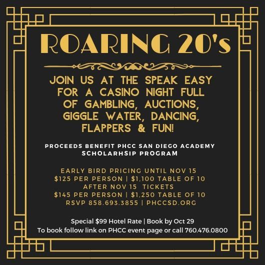 Proceeds benefit the PHCC San Diego Academy Scholarship Fund . Sponsorships Available.