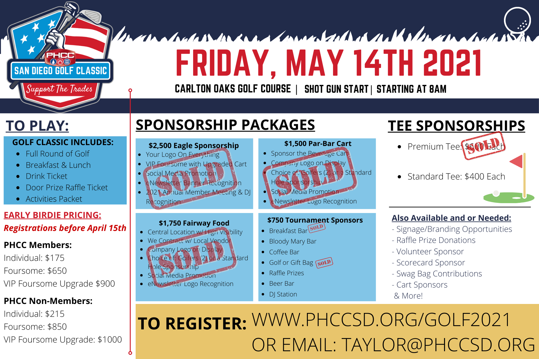 Tee Times and Sponsorship Levels are still available - Visit our event page to learn more.