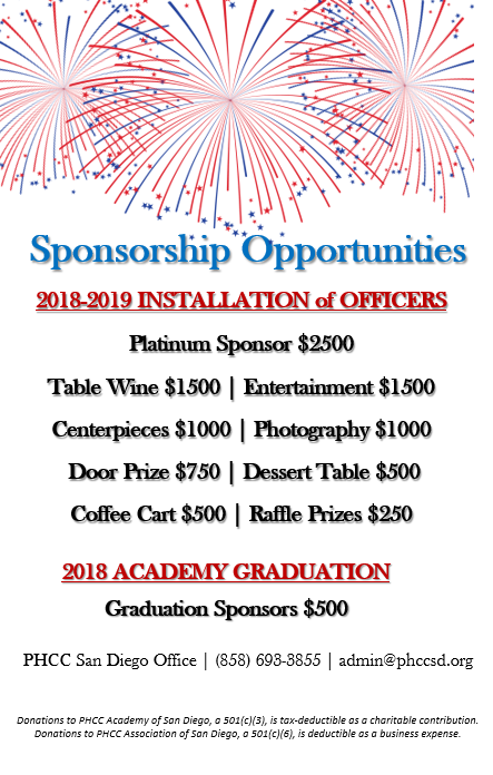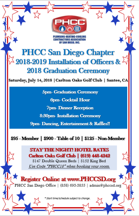 PHCC San Diego Class of 2018 Graduation Ceremony followed by PHCC San Diego Association Board of Directors Installation Reception.
